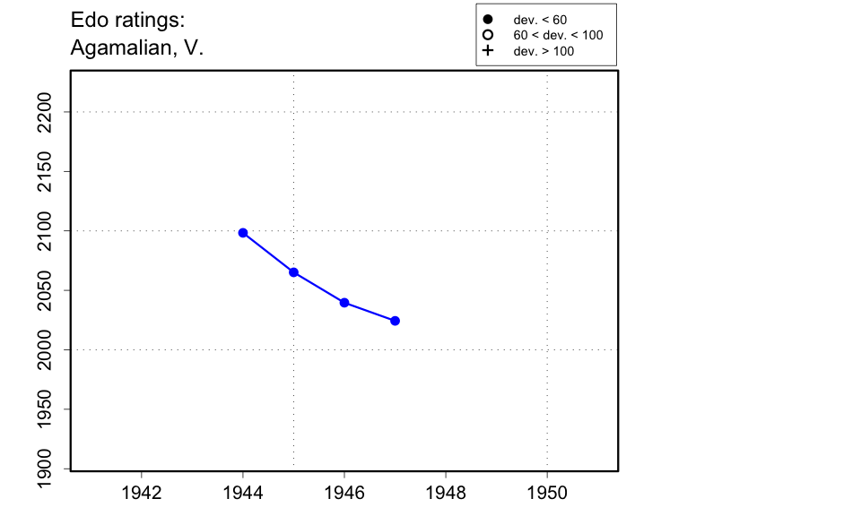 Tbilisi 1944 5th Georgian Championship 8 / 17 Tbilisi 1945 Tbilisi Championship 2.5 / 11 Tbilisi 1946 (1) 6th Georgia Championship 7 / 15 Tbilisi 1946 (2) 7th Georgia Championship 3.5 / 19 Tbilisi 1947 8th Georgian Championship 4 / 13