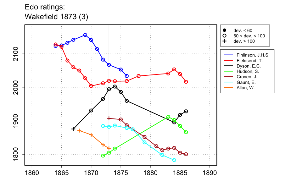 | The identities of many of the players is unclear. I have guessed at T. Fieldsend, but it could be W. Fieldsend. I have John Morrell France, who was active in the 1840s, but it could be a later player of the same surname. I have John Craven (of Leeds), but there were several other players named Craven, two others named John, one named James, and a W. Craven, at least. I have William Allan, but it could be John Allan of Huddersfield, or G. Allan of Halifax, and the report actually gives the spelling 'Allen'. I have J.H.S. Finlinson, but it could be Arthur Finlinson. I have S. Hudson, but it could be Joshua Gibson Hudson. The second round was not completed (Fieldsend and Craven should have played), and no third round was played. |
