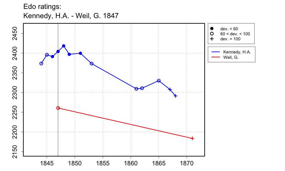 | Staunton, in the Illustrated London News of 3 Apr. 1847, says that the match 'has terminated', so I presume it finished at the end of March. In the Chess Player's Chronicle, as late as the 9 Oct. issue, Staunton gives a game between these two players saying the match is 'pending', but perhaps this was another match. |