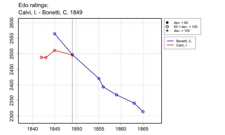 | La Grande Storia degli Scacchi says that Calvi returned to Modena in Dec. 1849 to play Bonetti and others. |