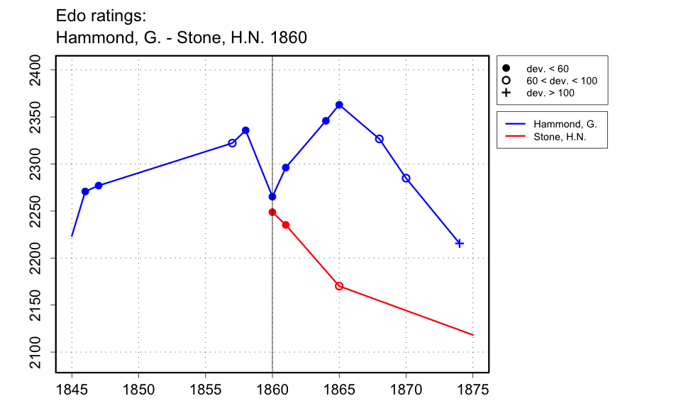 | Hazeltine, in the New York Clipper of 25 May 1861, says 'the footing up for 1860 stands' +15-15=8, which I take to mean that this was the result of games played in 1860. |