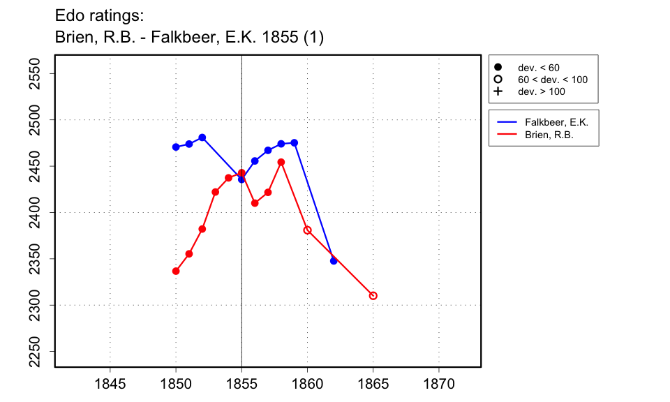 | All 15 games are given in the Chess Player's Chronicle (Sept., Oct. and Nov. 1855 issues). The 19 Aug. 1855 issue of the Era says the match started 'Friday last', i.e., 17 Aug., but the 26 Aug. 1855 issue says it started on 'Friday, the 18th inst.', but the Friday was the 17th. The result is given in the Oct. 1855 issue of the Chess Player's Chronicle. I guess, therefore, that it ended in Sept. 1855. |