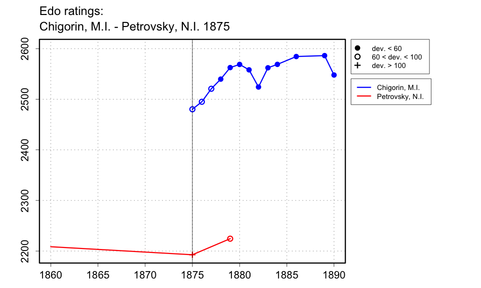 | Chigorin won this match, but by what score is not known. I use a soft result of 1-0 for Chigorin. |