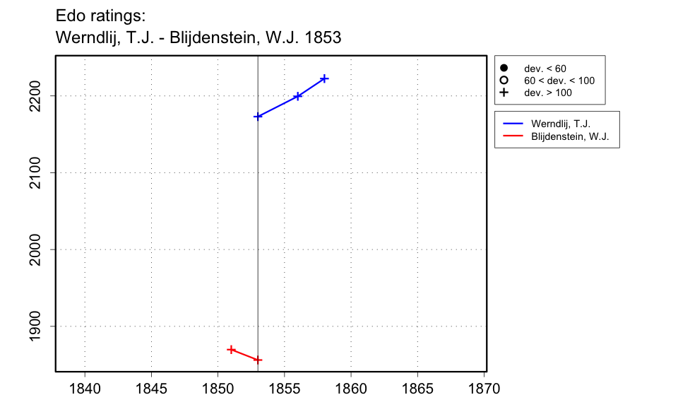 | One of three games played by Blijdenstein on a visit to Deventer. The report in the Jan. 1854 issue of Sissa (pp.23) is from a letter dated 10 Nov. 1853, so I guess that it was played in early November, though it might have been played a bit earlier. |