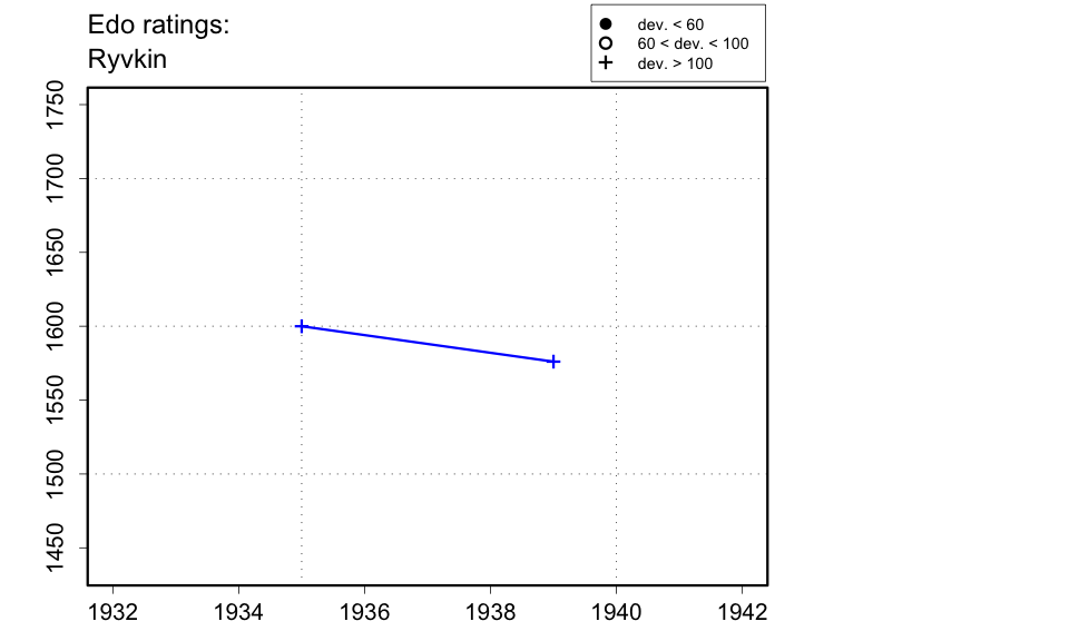 Moscow 1935 (10) Moscow Tournament 2.5 / 11 Rostov-on-Don 1939 (6) All-Union 1st Category Tournament - Group 2 0 / 8