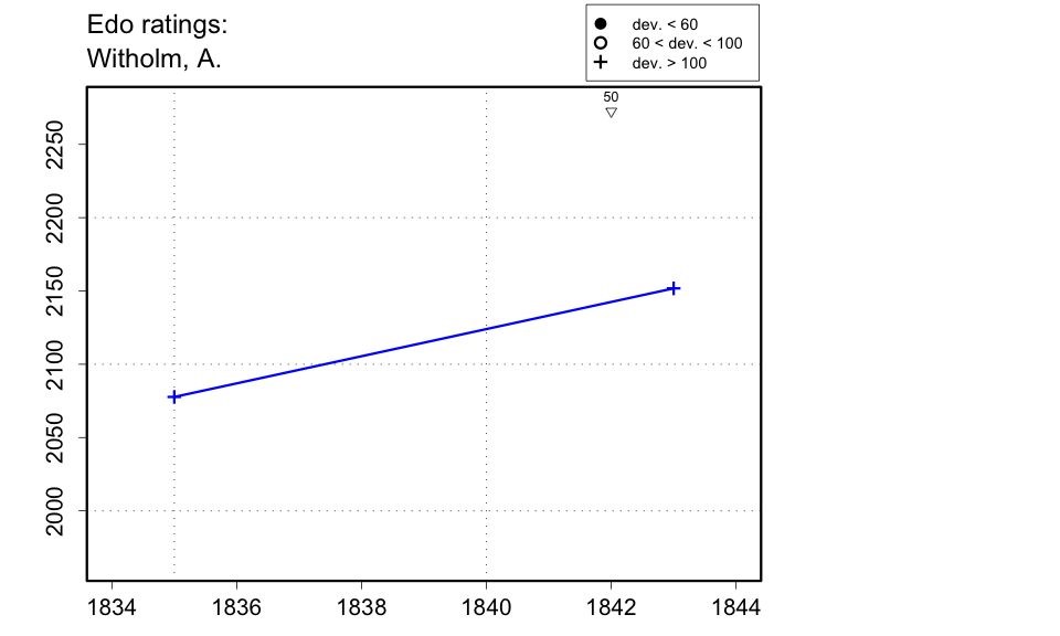 | Golombek's Encyclopedia gives 'Witthalm', and the Schachzeitung of Jan. 1866 (p.12) has 'Anton Witthalm'. Fiske gives 'Witholm', as does Walker in 'Deschapelles, the Chess King' (in Chess and Chess Players) and in the Philidorian. The 1836 volume of Le Palamède gives 'Wilhom', but in 1843 gives 'Witholm'. The Era of 8 Mar. 1863 (p.5) gives his age as 68, which, if accurate, implies a year of birth of 1792 or early 1793. |