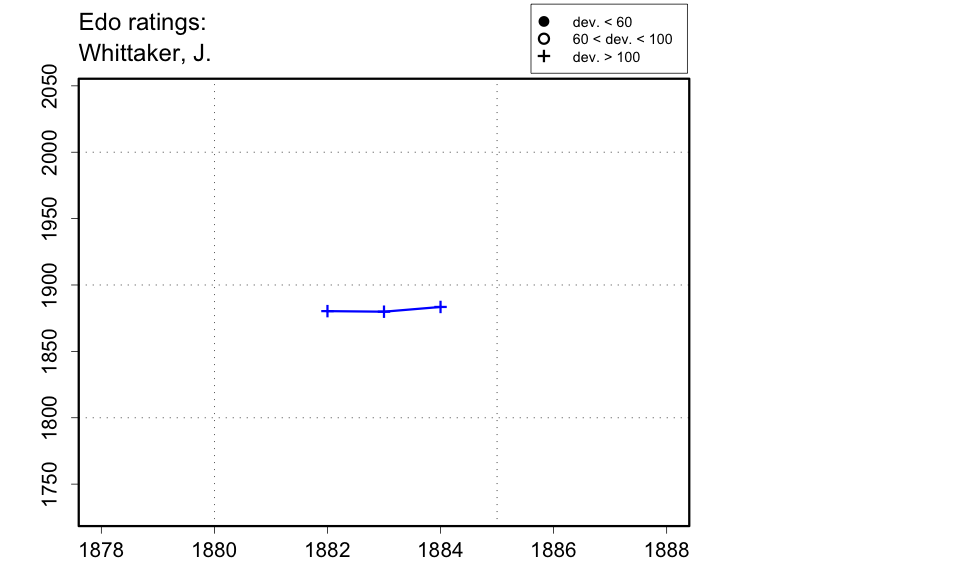 | This player from Burnley, Lancashire, is not to be confused with J. Whitaker from Bradford, Yorkshire. Gaige (Chess Personalia) has a 'John Whittaker', who died in 1901, and might be this player. |
