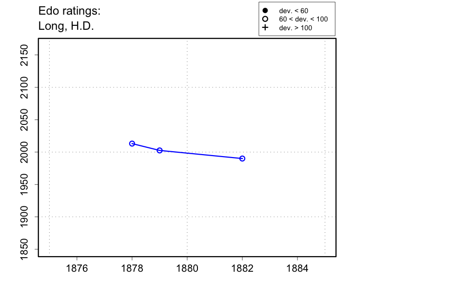 The Chess Player's Chronicle of 8 Feb. 1882 (p.69) and 22 Feb. 1882 (p.94) has 'H D Long'. The 1 Mar. 1882 issue (p.105) has 'A D Long'. Land and Water (25 Feb. 1882) has 'H.D. Long'. |