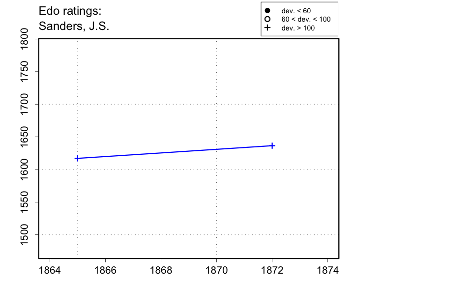 | The Chess Players' Quarterly Chronicle of Aug. 1871 has 'James Sanders, Clifton' on the committee for the Counties' Chess Association meeting at Malvern 1871. The Dec. 1870 issue (p.188) of the Chess Players' Quarterly Chronicle, the 12 Nov. 1870 issue of the Illustrated London News (p.507), and the 19 Aug. 1871 issue of the Illustrated London News (p.163) have 'Saunders'. Burt's history of the Bristol Club (p.10) and the Chess Player's Magazine of Oct. 1864 (p.290) have 'Sanders'. There was also a Thomas Cooke Sanders of Oxford active at around the same time. The Western Daily Press of 13 Apr. 1888 (p.7) mentions a 'J.J. Saunders', who might possibly be the same person, or perhaps a son. A 'J. Sanders' of Birmingham is listed as a subscriber in the Report of the Manchester Meeting of 1857 (p.39). Is this the same person? |