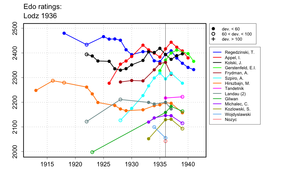 | The scores given by Lissowski add to 90.5, instead of 91, as they should for a 14-player single-round all-play-all tournament. I will guess, somewhat arbitrarily, that the bottom player, Wojdysławski, scored 2.5 instead of 2, as reported. |